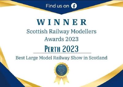 We are delighted to announce that Perth Model Railway Exhibition has won the 2023 Scottish Model Railway Modellers award for “Best Large Model Railway Show in Scotland” for the second time in a row!